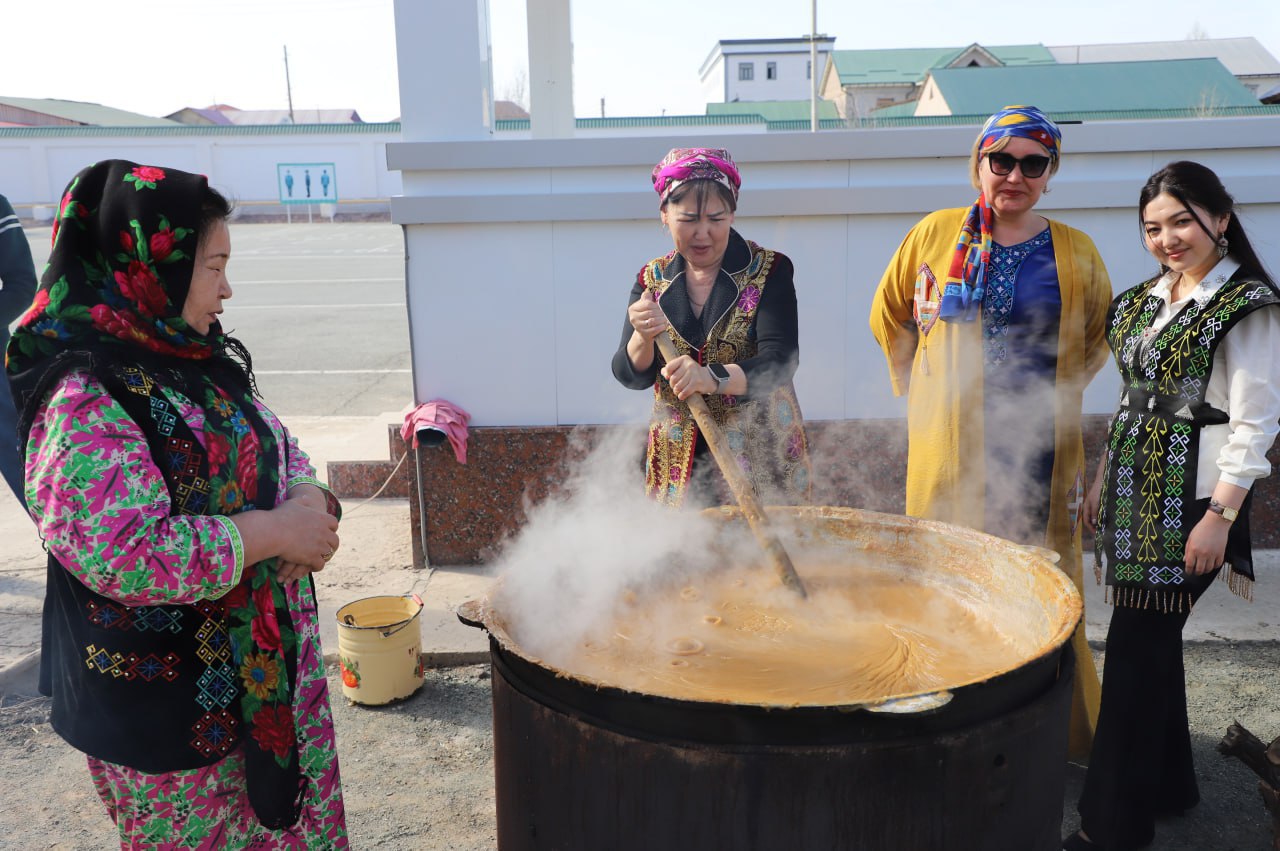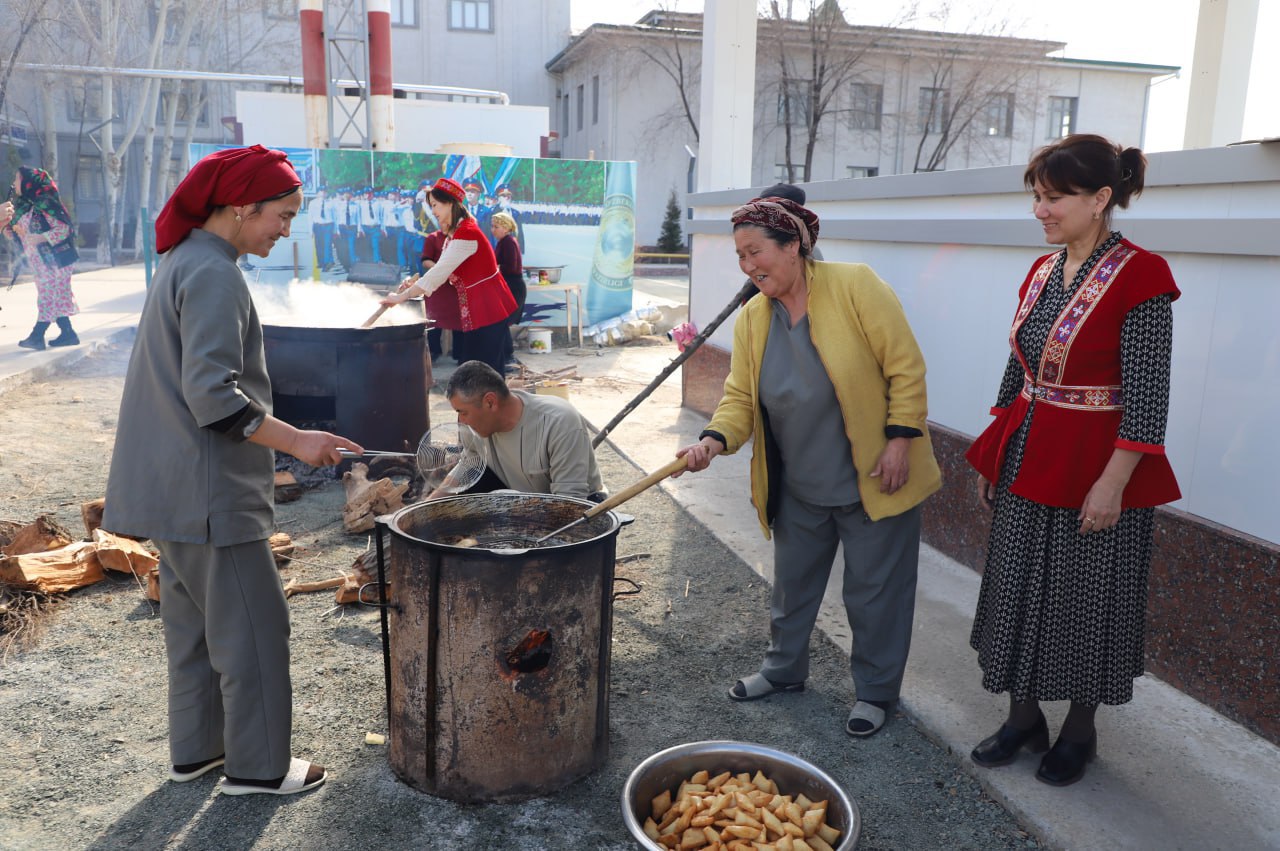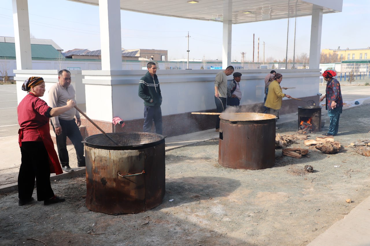 Tadbir davomida doshqozonda sumalak qaynatilib, osh damlanib hamda Navro‘z go‘jalar pishirilmoqda. Ushbu bahoriy bayram do‘stlik, mehr-oqibat va yangilanish timsoli sifatida yana bir bor qalblarga iliqlik baxsh etadi.