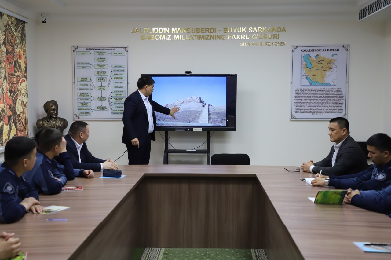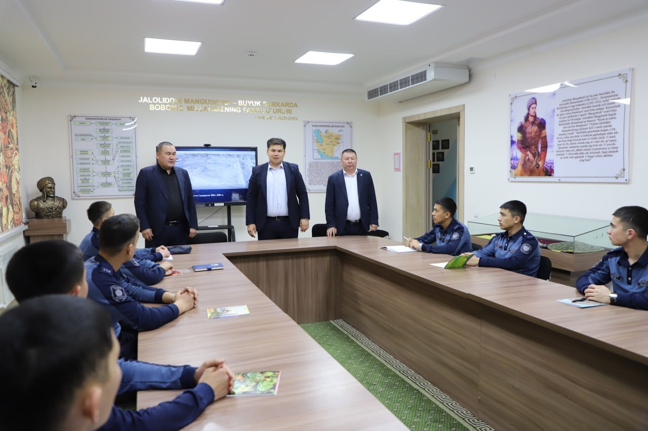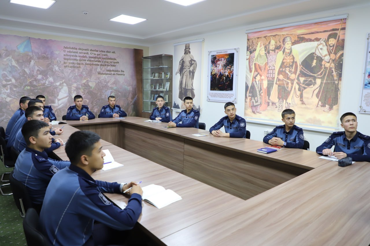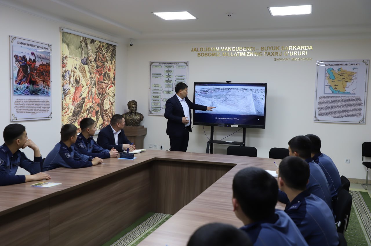 Joriy yilning 26-mart kuni IIV Nukus “Temurbeklar maktabi” harbiy-akademik litseyida 1-kurs o’quvchilariga “Qadimgi Xorazm mudofaa inshoatlari” mavzusida davra suhbati tashkil etildi.