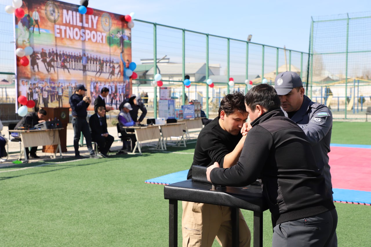 Musobaqada o‘quvchi yoshlar sportning “Milliy kurash”, “Tosh ko‘tarish”, “Arqon tortish”, “Pnevmotik quroldan o‘q uzish turi”, “Kamondan o‘q otish”, “Qo‘l kurashi” hamda “Langi o‘yini” turlaridan o‘z-aro bellashib, kuchlarini sinovdan o‘tkazishdi.