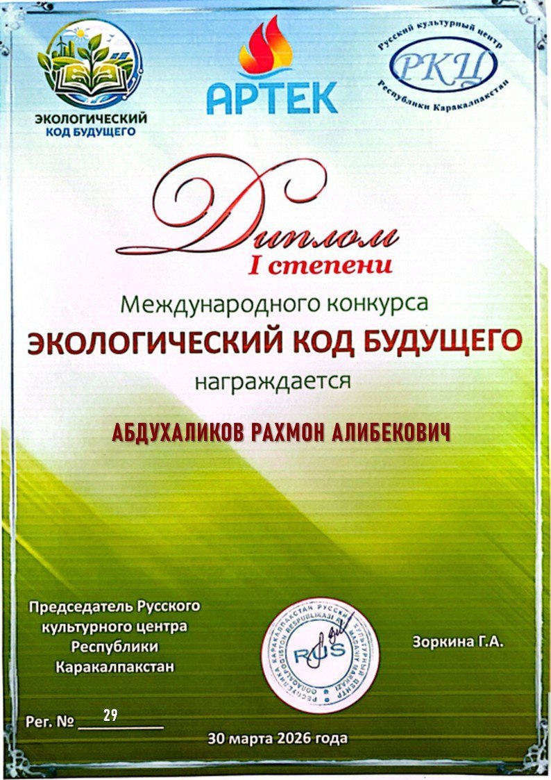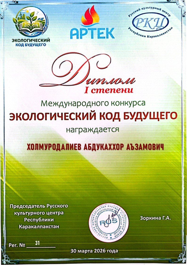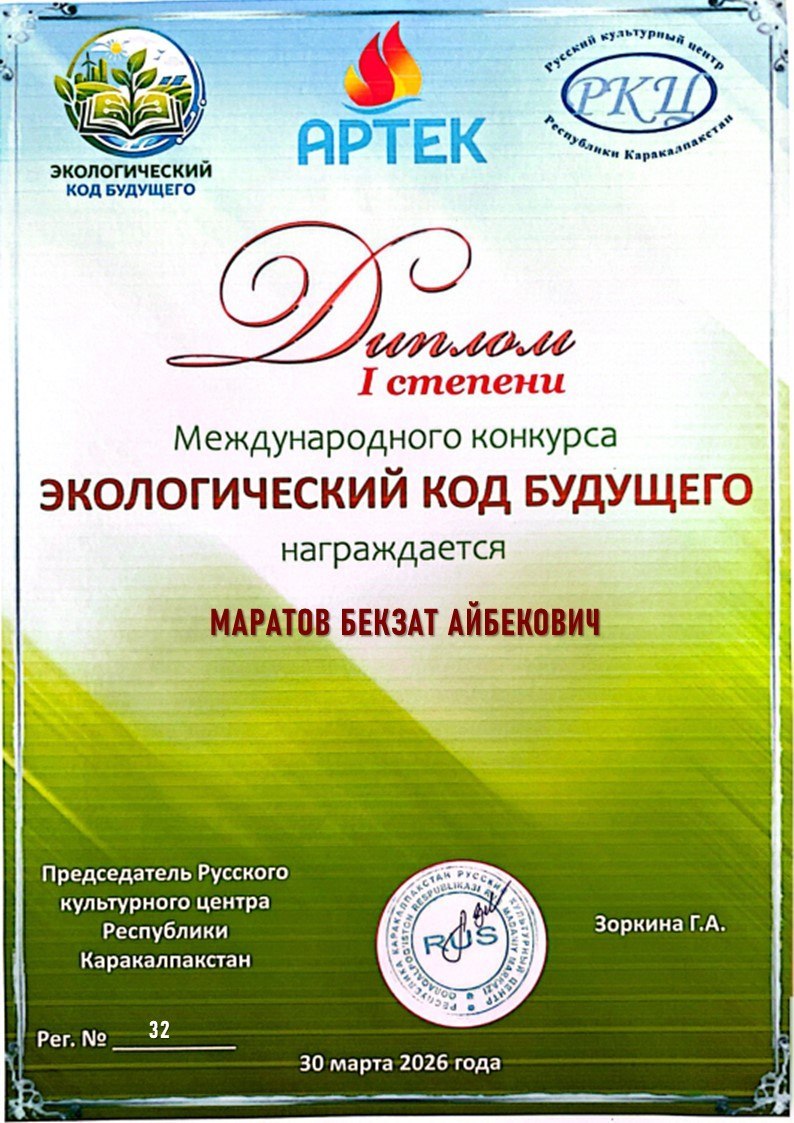 🌎 IIV Nukus “Temurbeklar maktabi” harbiy-akademik litseyining 6 nafar oʻquvchisi rus tilida oʻtkazilgan «Экологический код будущего» Xalqaro tanlovida faol ishtirok etib, gʻoliblikni qoʻlga kiritdi.