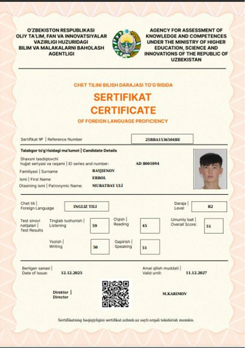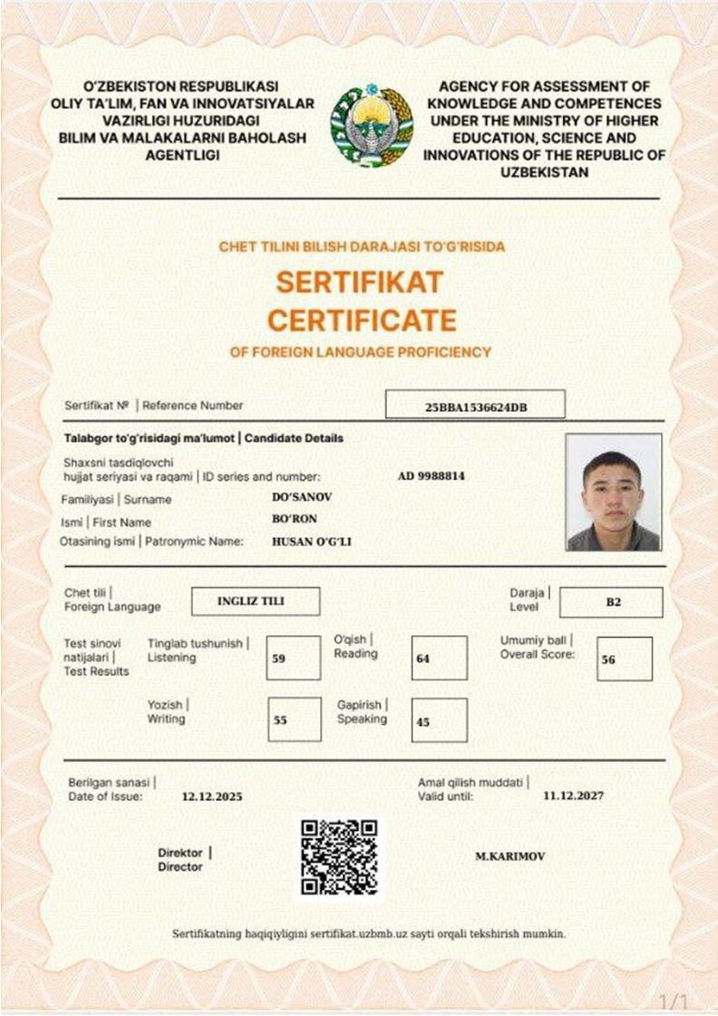 🎉Nukus “Temurbeklar maktabi” harbiy-akademik litseyining bir qator o‘quvchilari INGLIZ TILI fanidan milliy sertifikatni qo‘lga kiritdi.
